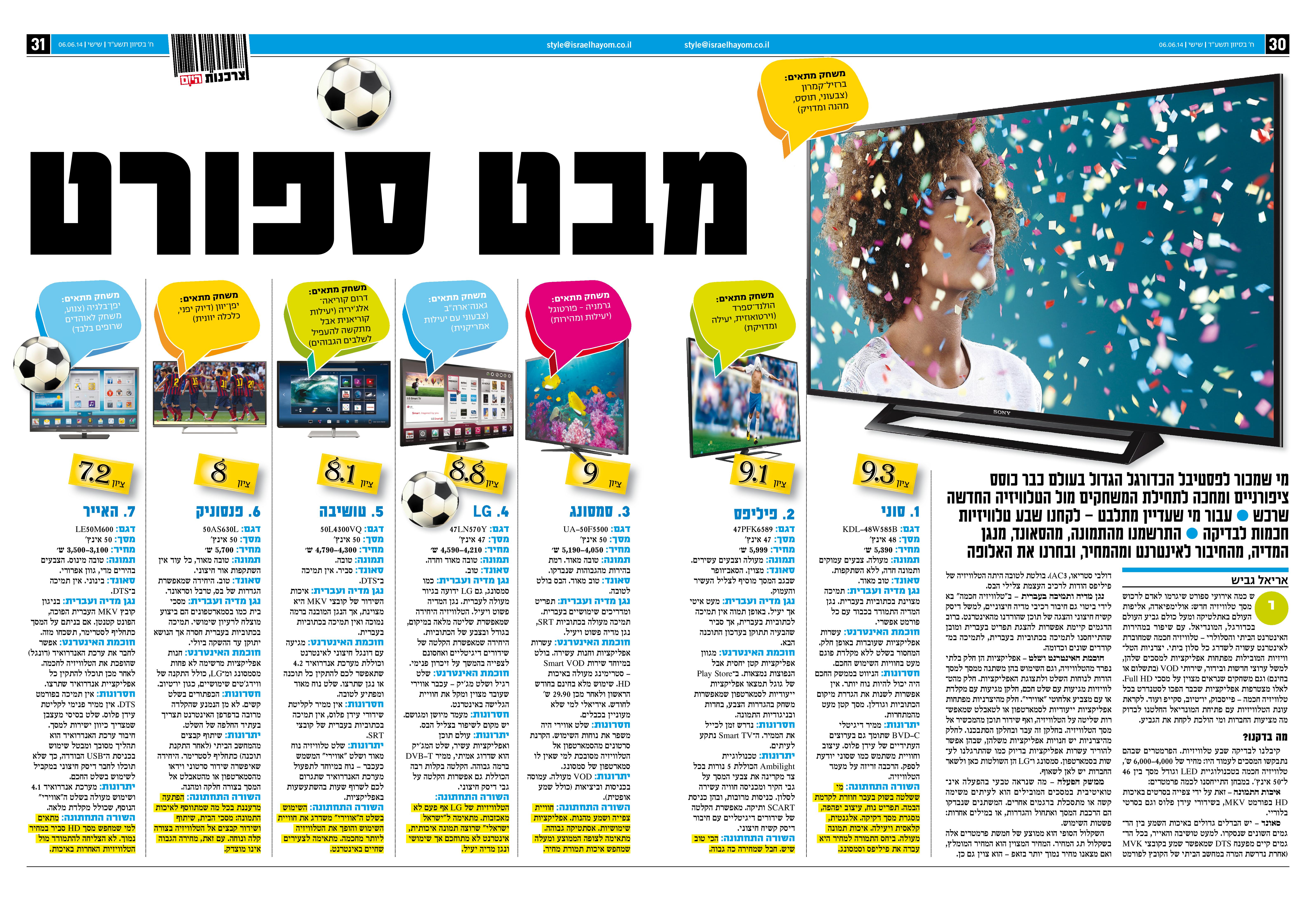 מי שמכור לפסטיבל הכדורגל הגדול בעולם כבר כוסס ציפורניים ומחכה לתחילת המשחקים מול הטלוויזיה החדשה שרכש • עבור מי שעדיין מתלבט – לקחנו שבע טלוויזיות חכמות לבדיקה • התרשמנו מהתמונה, מהסאונד, מנגן המדיה, מהחיבור לאינטרנט ומהמחיר, ובחרנו את האלופה