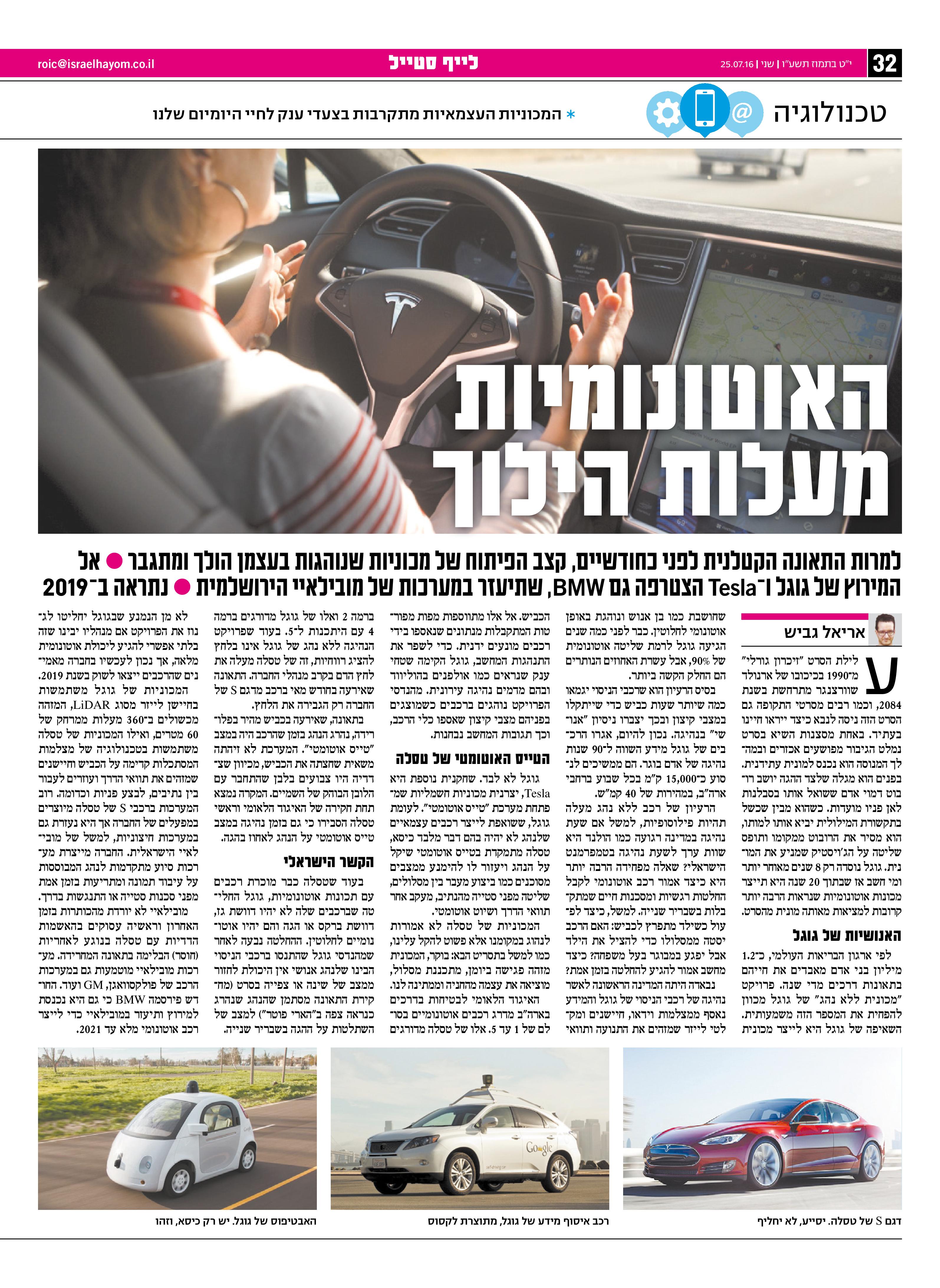 מובילאיי לא יורדת מהכותרות בזמן האחרון וראשיה עסוקים בהאשמות הדדיות עם טסלה בנוגע לאחריות (חוסר) הבלימה בתאונה המחרידה. מערכות מובילאיי מוטמעות גם במערכות הרכב של פולקסוואגן, GM ועוד. החודש פירסמה BMW כי גם היא נכנסת למירוץ ותיעזר במובילאיי כדי לייצר רכב אוטונומי מלא עד 2021.