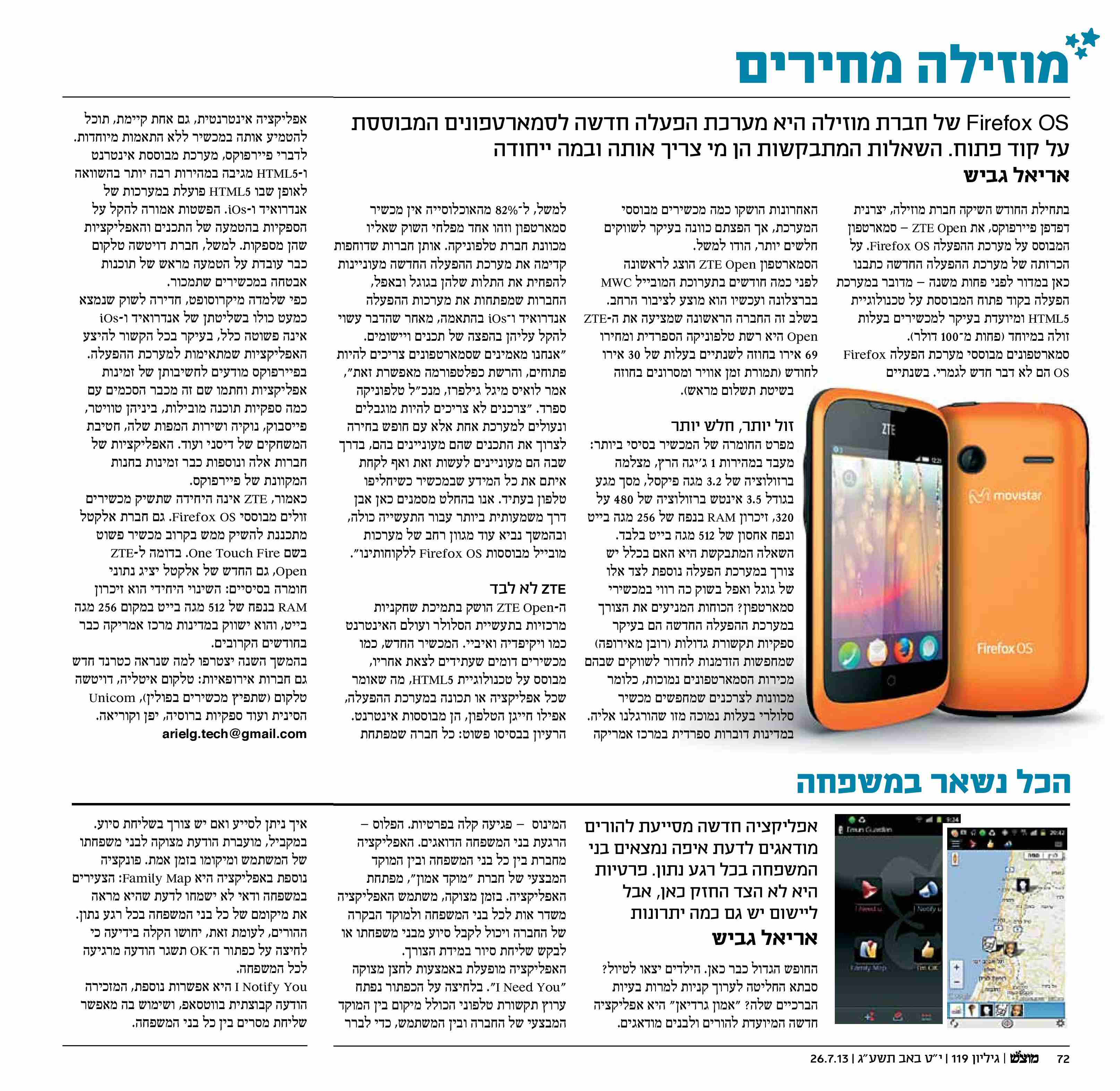 בתחילת החודש השיקה חברת מוזילה, יצרנית דפדפן פיירפוקס, את ZTE Open – סמארטפון המבוסס על מערכת ההפעלה Firefox OS – מערכת ההפעלה החדשה של פיירפוקס. על הכרזתה של מערכת ההפעלה החדשה כתבנו כאן במדור לפני פחות משנה – מדובר במערכת הפעלה בקוד פתוח המבוססת על טכנולוגית HTML5 ומיועדת בעיקר למכשירים בעלות זולה במיוחד (פחות מ-100 דולר).