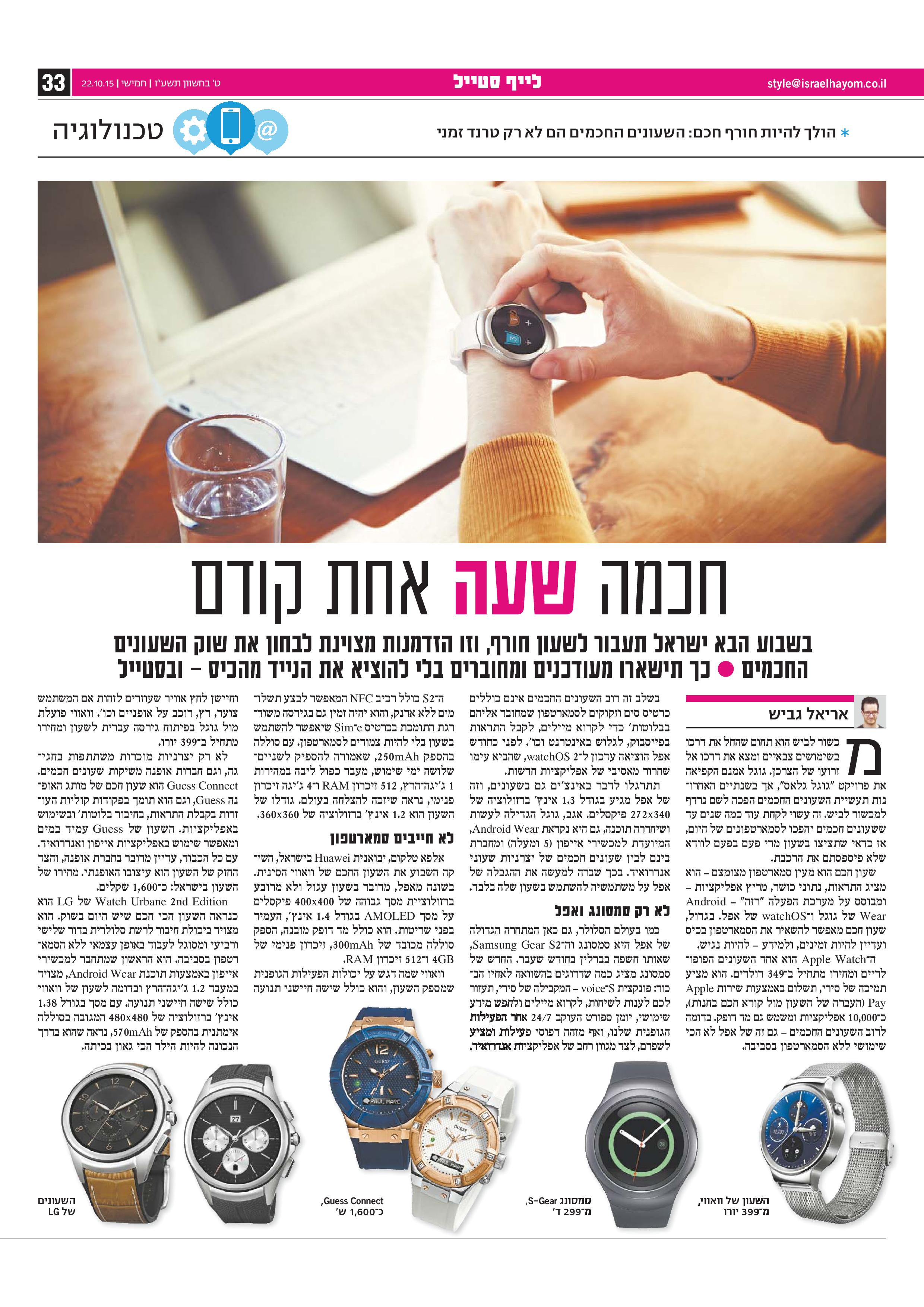 מכשור לביש הוא תחום שהחל את דרכו בשימושים צבאיים ומצא את דרכו אל זרועו של הצרכן. גוגל אמנם הקפיאה את פרויקט "גוגל גלאס", אך בשנתיים האחרונות תעשיית השעונים החכמים הפכה לשם נרדף למכשור לביש. זה עשוי לקחת עוד כמה שנים עד ששעונים חכמים יהפכו לסמארטפונים של היום, אז כדאי שתציצו בשעון מדי פעם בפעם לוודא שלא פיספסתם את הרכבת.