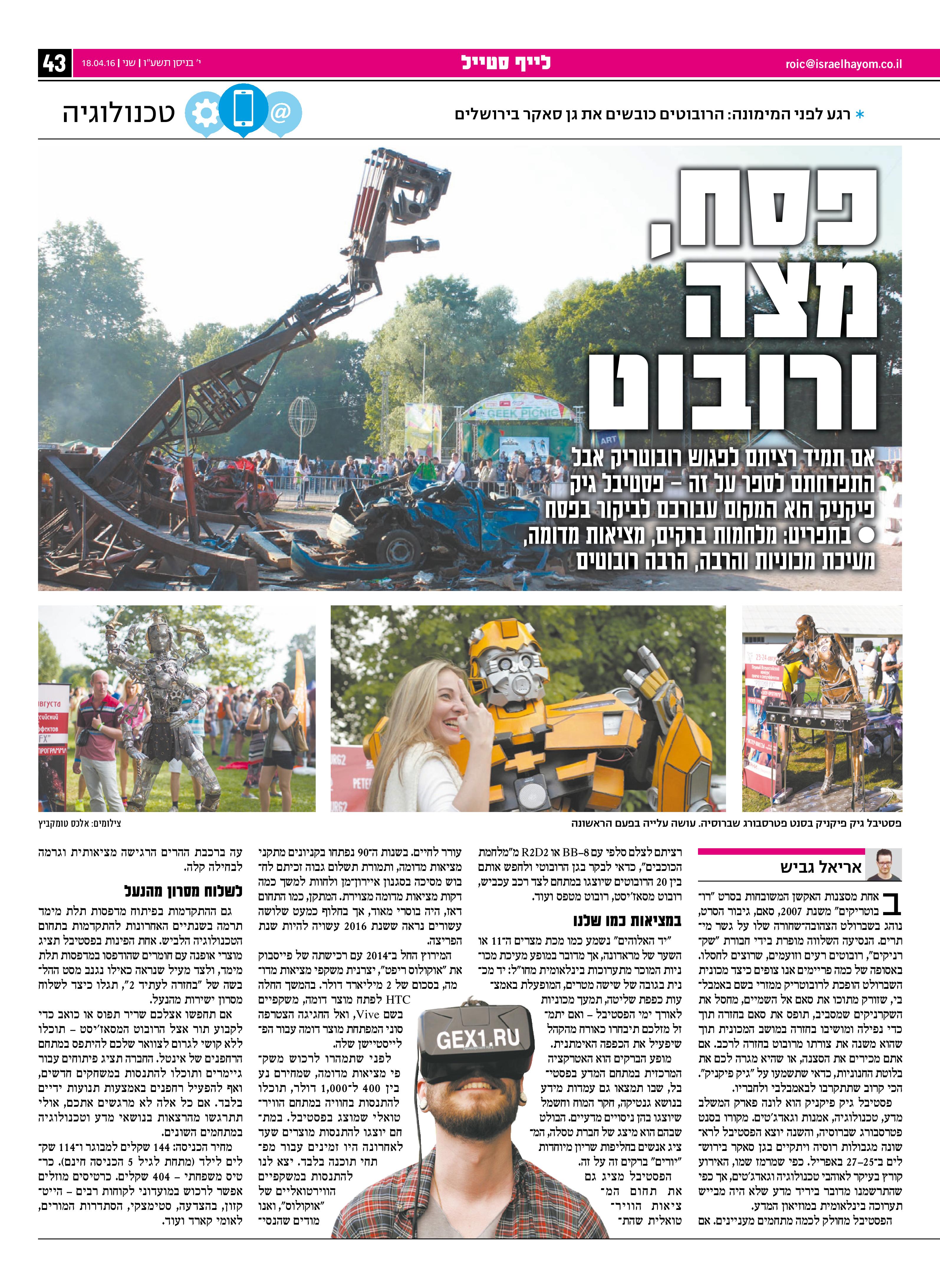 אם תמיד רציתם לפגוש רובוטריק אבל התפדחתם לספר על זה – פסטיבל גיק פיקניק הוא המקום עבורכם לביקור בפסח • בתפריט: מלחמות ברקים, מציאות מדומה, מעיכת מכוניות והרבה, הרבה רובוטים