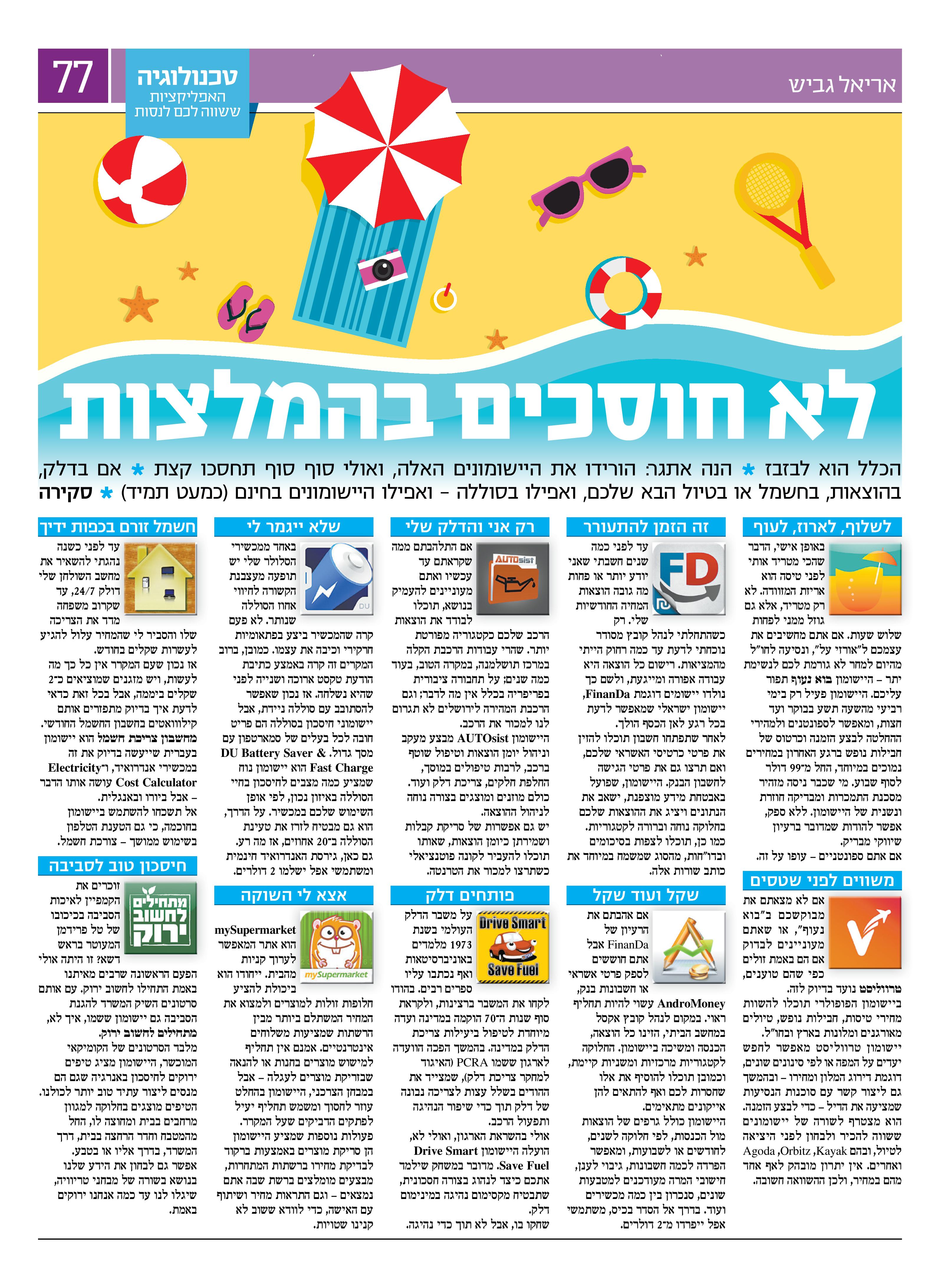 הכלל הוא לבזבז • הנה אתגר: הורידו את היישומונים האלה, ואולי סוף סוף תחסכו קצת • אם בדלק, בהוצאות, בחשמל או בטיול הבא שלכם, ואפילו בסוללה – ואפילו היישומונים בחינם (כמעט תמיד) • סקירה